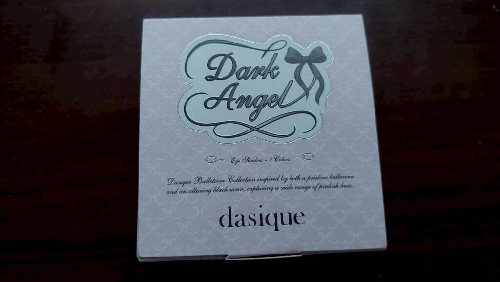 バレエコアシリーズのアイシャドウ2種のうちの1つ。もう1つのラブエンジェルの方が明るさ的には合うかなと思ったものの、ニュートラルっぽそうだったので強い青みを求めてダークエンジェルを買いました。